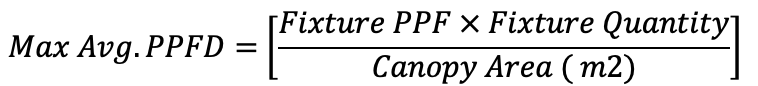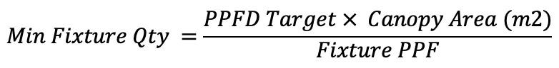 Rearranged, the formula can also determine the minimum fixture quantity required to reach the theoretically max average PPFD: